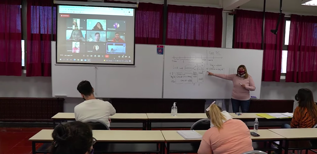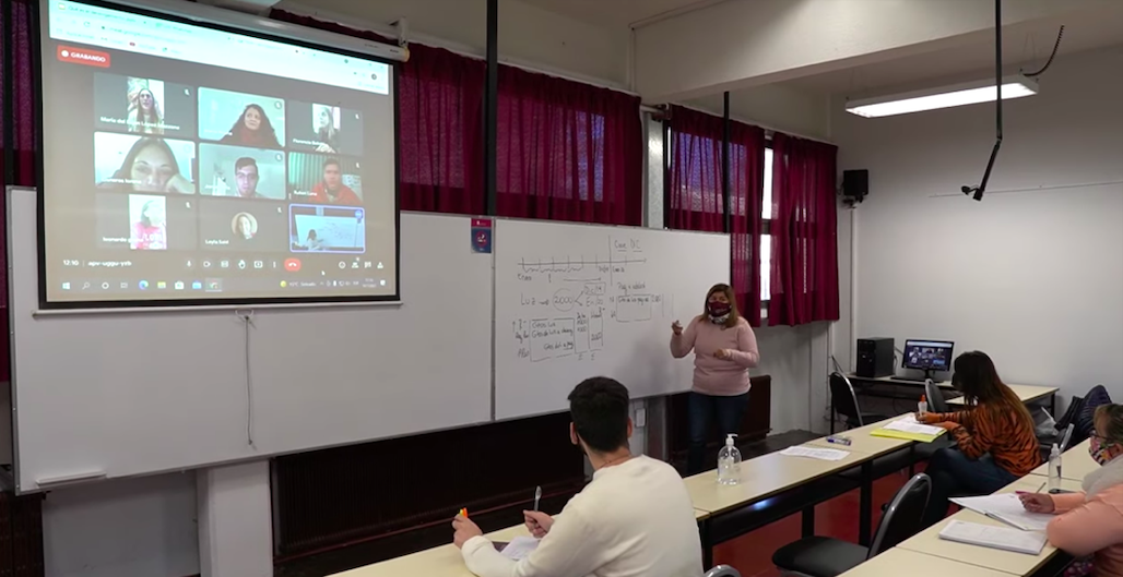 Por su parte la Secretaria Académica de la Facultad, Magíster Norma Salvatierra, señaló: “Lo central será acercar el aula física a los estudiantes y que ellos tomen sus clases de la manera más real posible, que los que sigan al docente desde sus casas se sientan tan integrados como los que estarán en la Facultad. Buscamos recuperar las experiencias valiosas del aula como el uso del pizarrón y el fuerte sentido de comunidad educativa que tiene Económicas, creando un modelo que combine lo presencial y lo virtual, que nos permita desarrollar un espacio más flexible y acorde al momento que estamos atravesando hasta que termine la crisis sanitaria”.