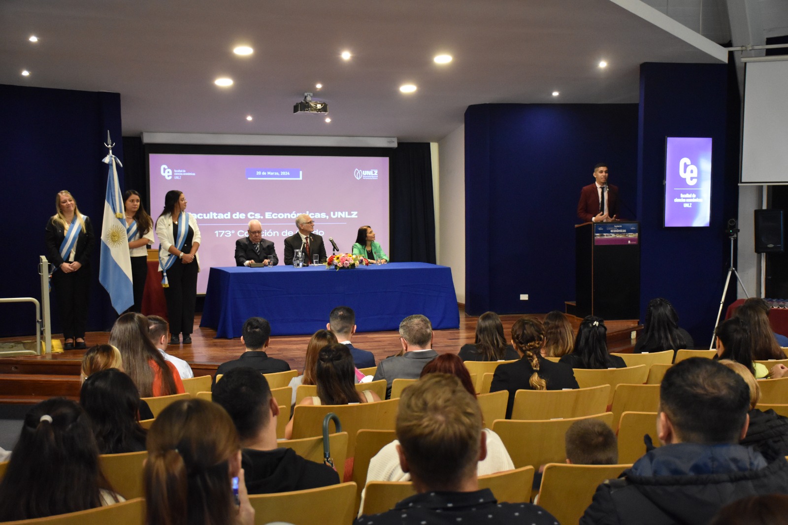 El miércoles 20 de marzo se llevó a cabo la Colación de Grado N°173. Un total de 34 nuevos graduados recibieron sus títulos de Contadores Públicos y Licenciados en Administración. El acto estuvo encabezado por el Decano de la Facultad de Ciencias Económicas, Magister Gabriel Franchignoni; acompañado por el Vicerrector de la UNLZ, Magíster Alejandro Kuruc; y la Secretaria Académica de la Facultad, Magíster Norma Salvatierra.