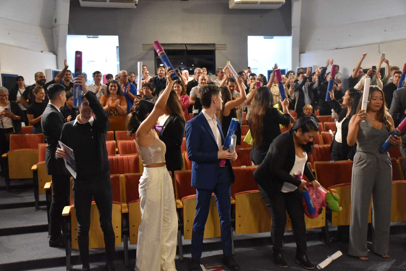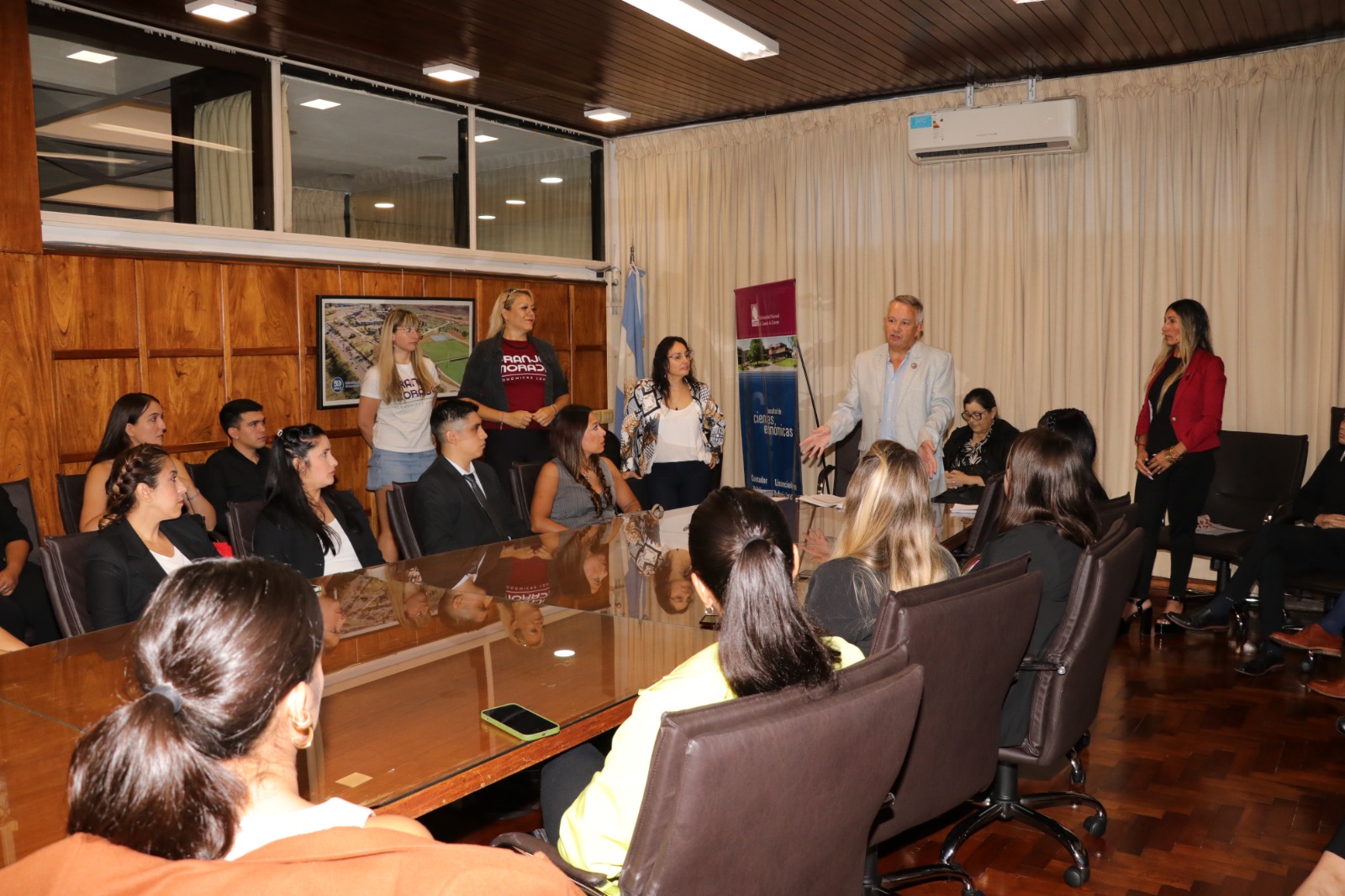 El evento se desarrolló en el Aula Magna Doctor Raúl Alfonsín, en medio de un temporal terrible que afectó a la región. El Magíster Gabriel Franchignoni, luego de agradecer la presencia de familiares y amigos de los graduados, a pesar de las inclemencias del tiempo, se refirió al rol de la universidad.